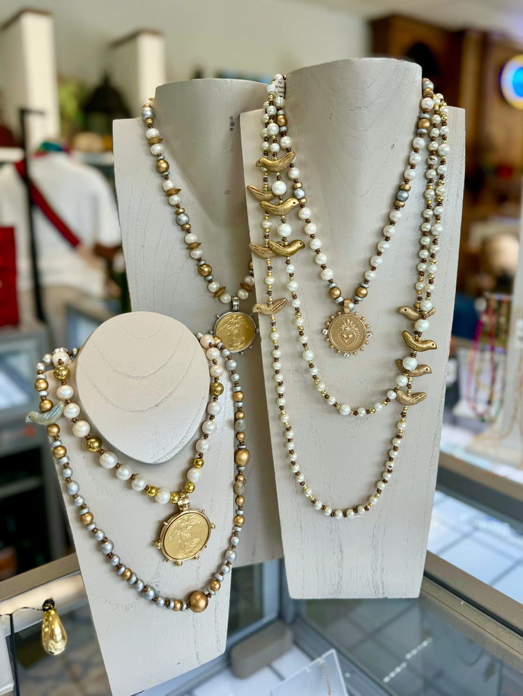 20" Pearls with Sacred Heart Gold Pendant Necklace