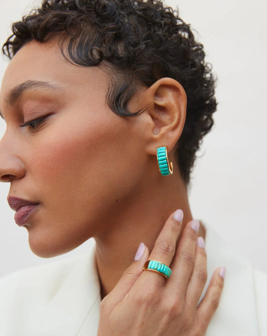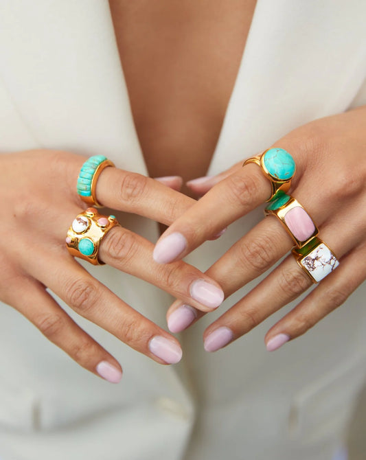 Rectangular Turquoise Multi-Stone Ring - Gold