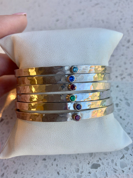 4mm Hammered Sterling Silver & Turquoise Cuff