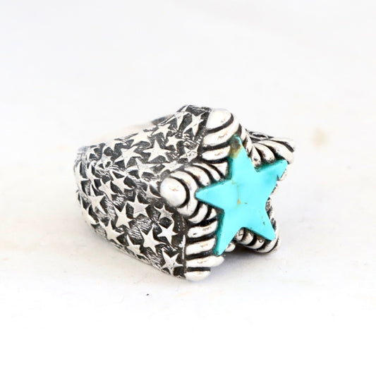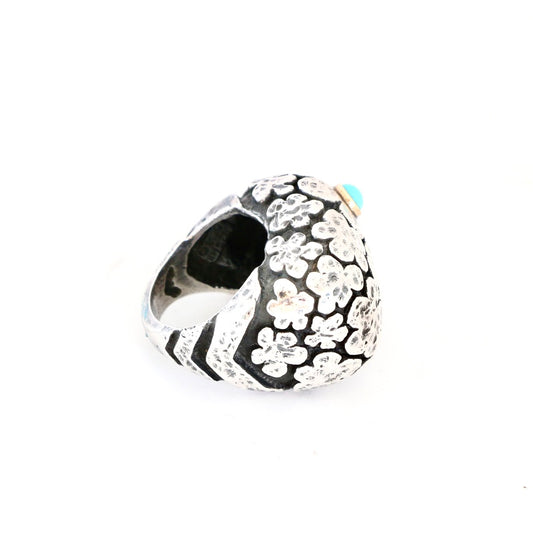 Turquoise with 14kt Gold Triangle Trim and Zigzag Shank "Signature" Ring