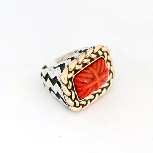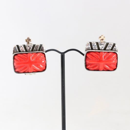 Carved Red Coral with Gold Cross "Signature" Earrings