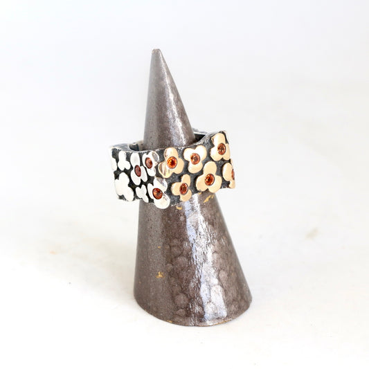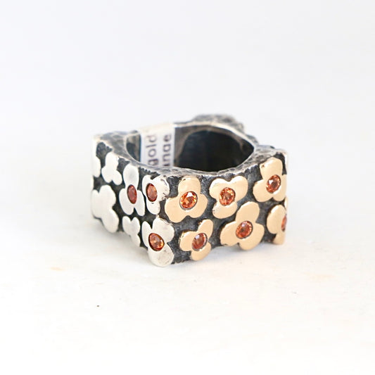 Small Square with Gold Flowers and Orange Padparadscha Sapphires "Signature" Ring