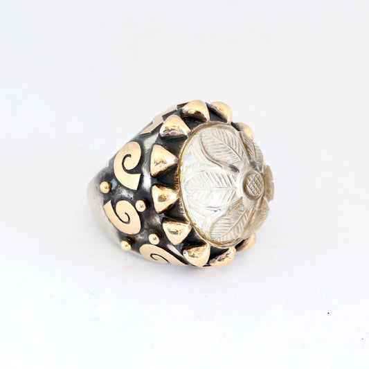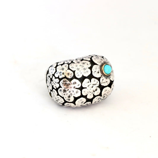 Sterling Flower with Blue Topaz and Gold "Signature" Ring