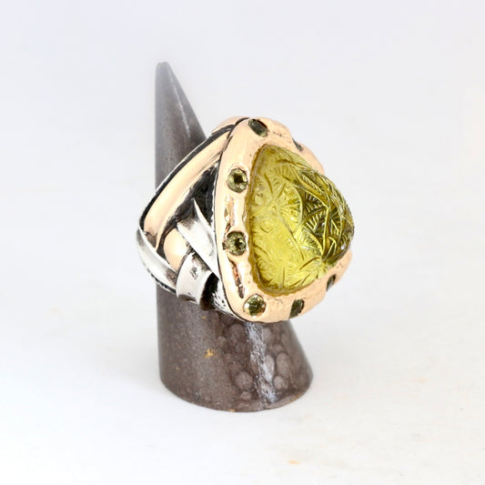 Large Triangular Blue Opal with Gold Scalloped Top "Signature" Ring