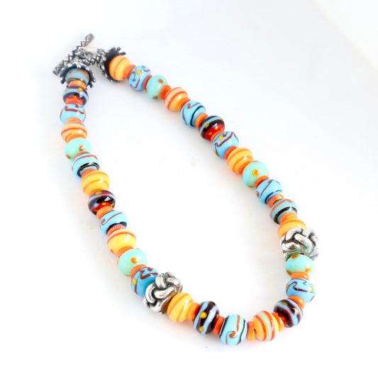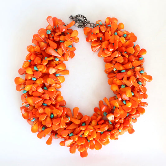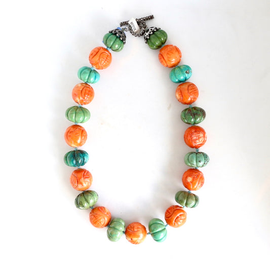 Chunky Engraved Coral & Turquoise Ball "Signature" Necklace