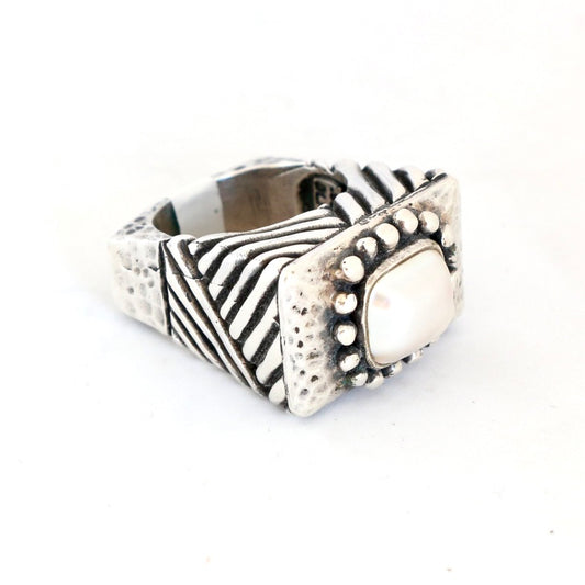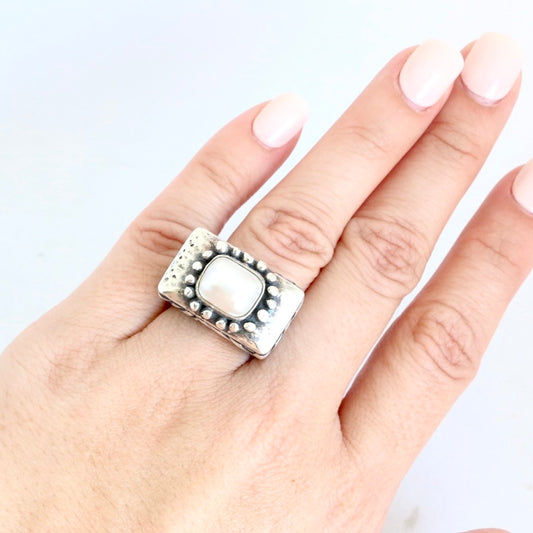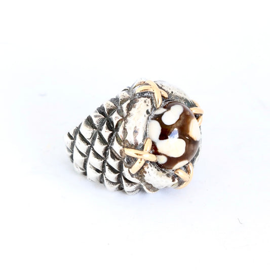 Large Engraved Opal Set in Gold with Gold Bubble Dots "Signature" Ring