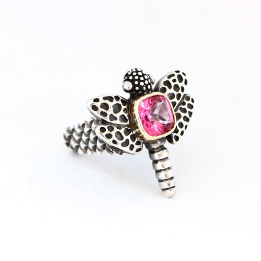 Dragonfly with Pink Sapphire and Gold "Signature" Ring
