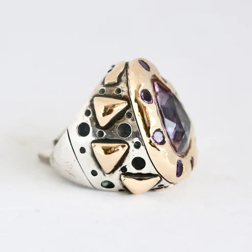 Large Faceted Amethyst with a Gold and Amethyst Bezel "Signature" Ring