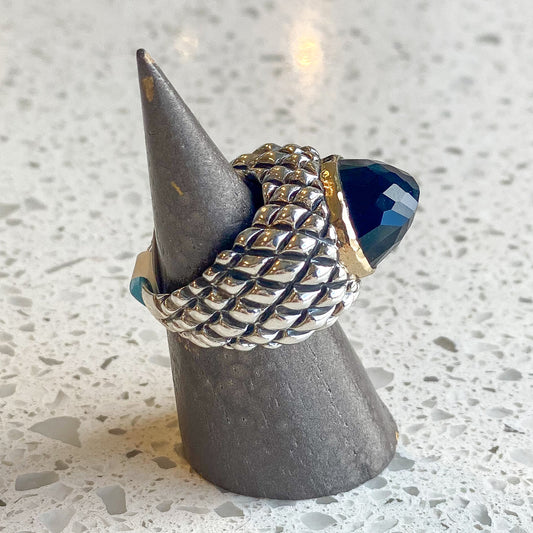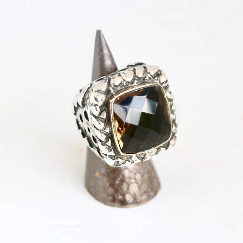 Large Square Faceted Smokey Faceted Brown Topaz with Silver Braided Top "Signature" Ring