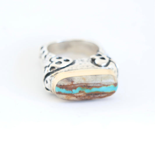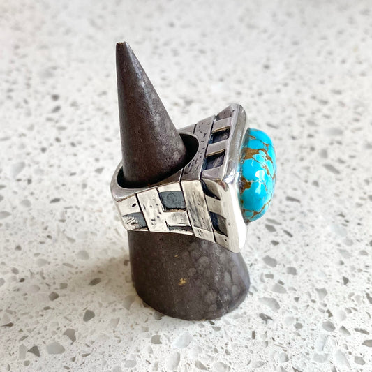 Kingman Teal Turquoise Bronzite Drum Ring