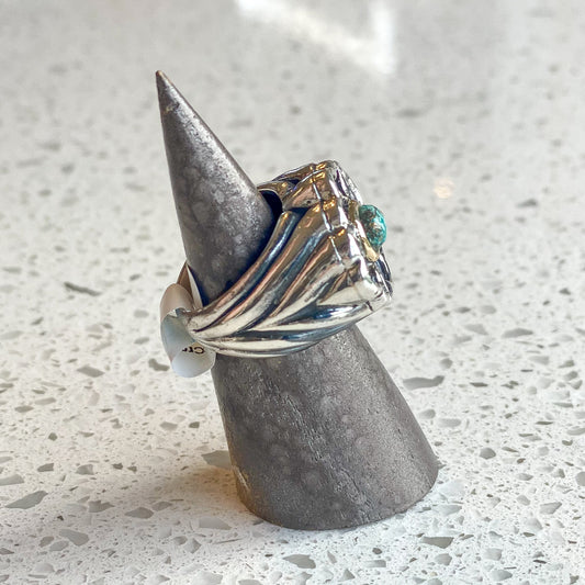 Blue Green Mohave Pointed Top Art Deco Shank Ring