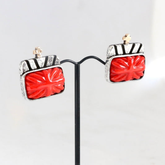 Carved Red Coral with Gold Cross "Signature" Earrings