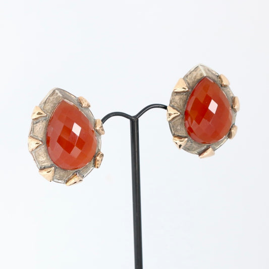 Carnelian Stone Trimmed in Gold Triangles "Signature" Earrings