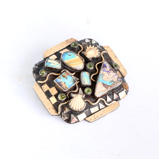 Blue Lapis Face Surrounded by Orange Sapphires and Gold "Signature" Pendant