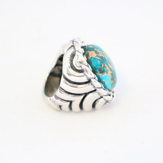 Oval Mother of Pearl with Gold Bezel and Starburst Shank Ring