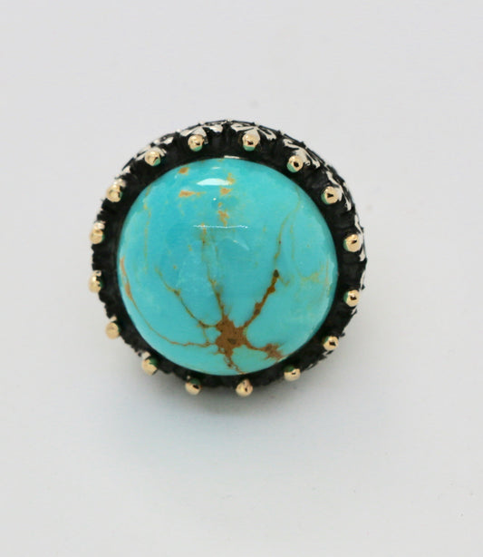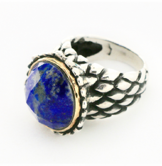 Oval Mother of Pearl with Gold Bezel and Grapevine Ring