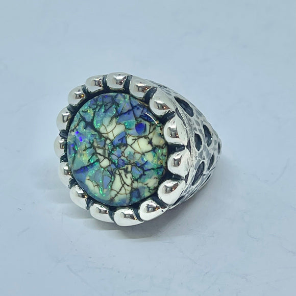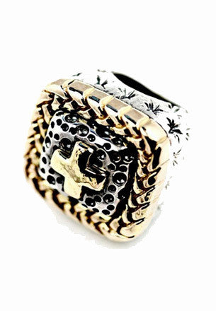 Dome Stone with Crosses Shank Ring