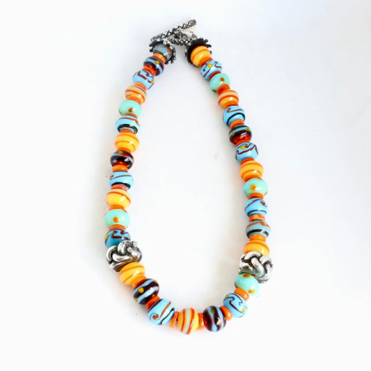 Orange and Blue Murano Italian Glass Beads "Signature" Necklace