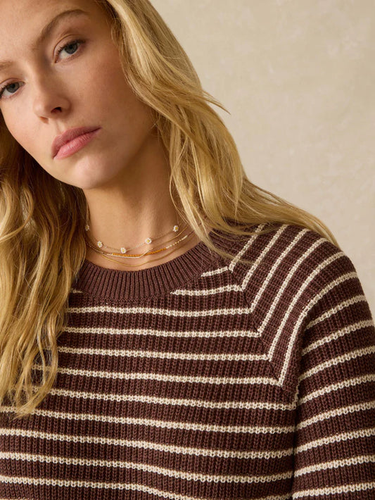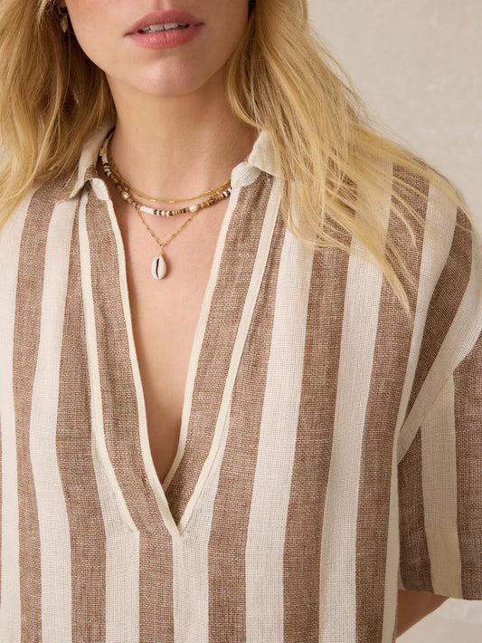 Miramar Linen Sweater Tee - Cocoa Sand Stripe