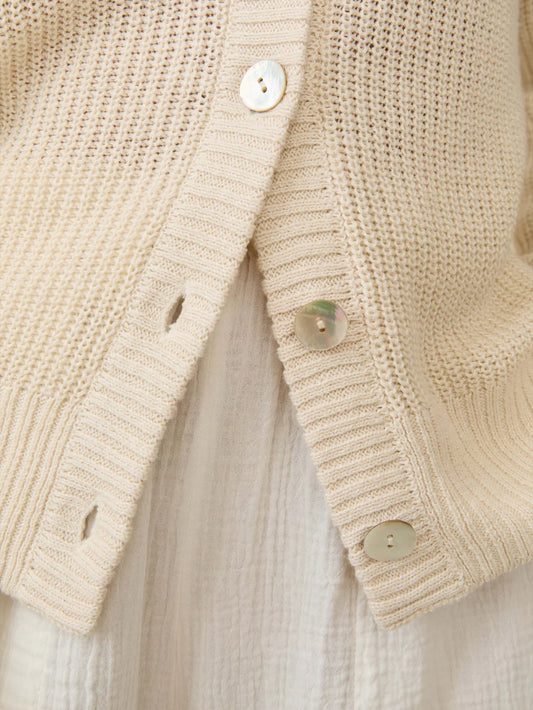 Miramar Linen Relaxed Polo Cardigan - Summer Sand