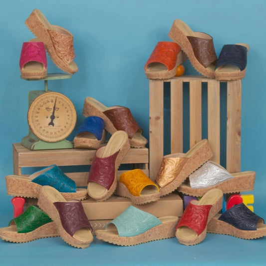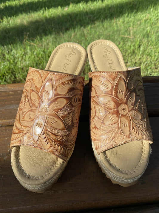 Hand-Tooled Leather 3" Espadrille Wedge Shoes