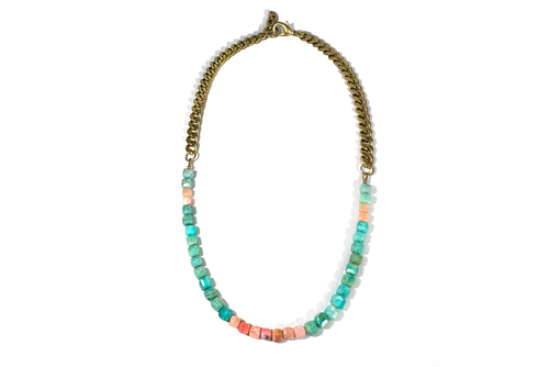 Shackle Duo Necklace - Amazonite Cubes/Chain