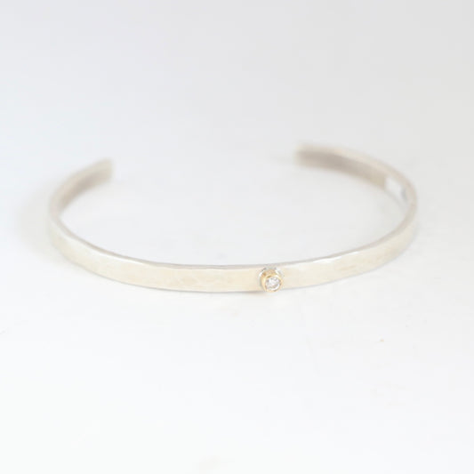 4MM Sterling Silver Cuff with Diamond and 14kt Gold Bezel