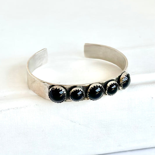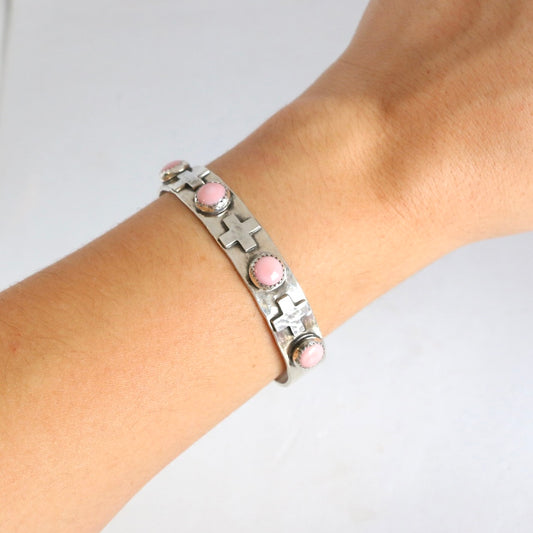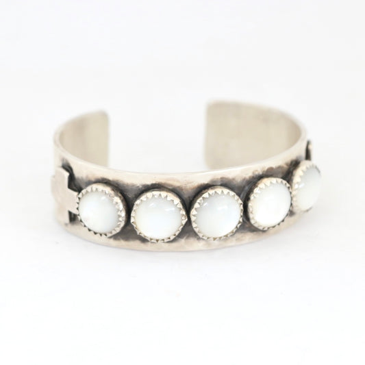 3/4" Sterling Hammered Cuff with 5 MOP & Crosses