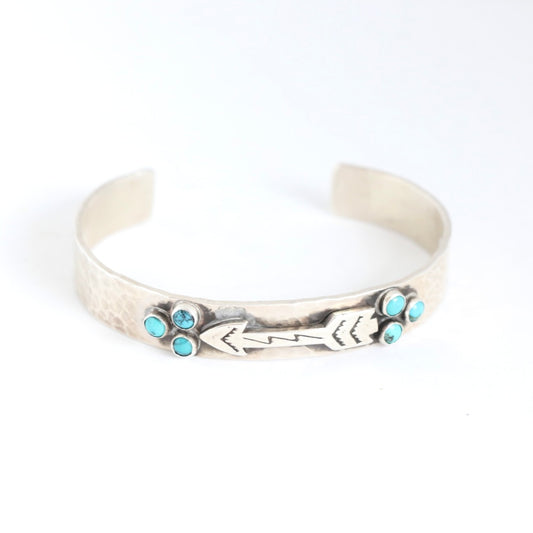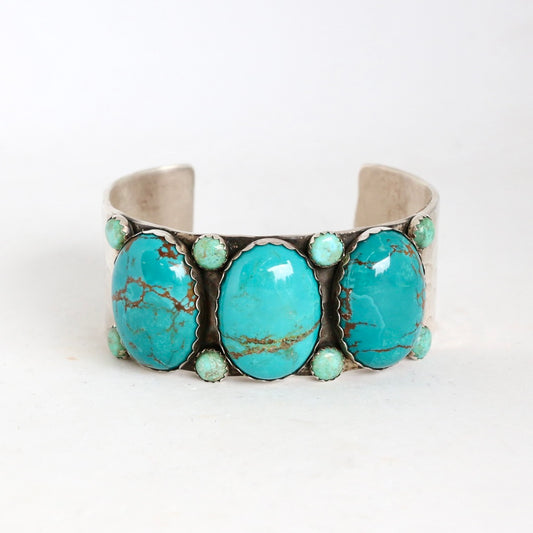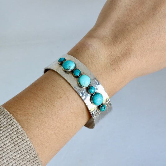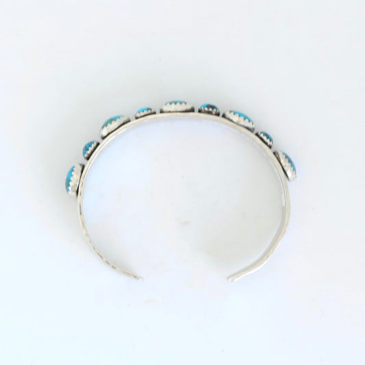 Sterling Cuff with 9 Multi-Size Turquoise Stones