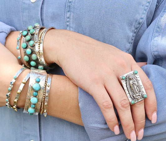 3/4” Two Tone Alternating Size Turquoise Cuff