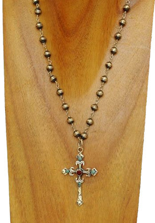 Large Santa Fe Cross with Pearl Pendant