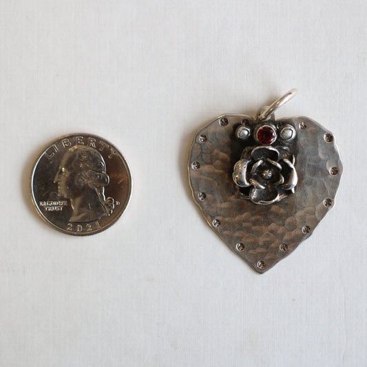 Hammered Disc with Diamond and Gold Bezel Pendant