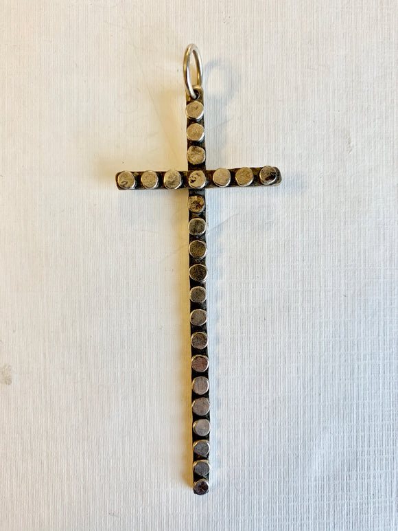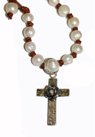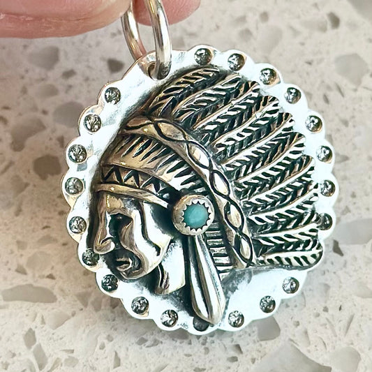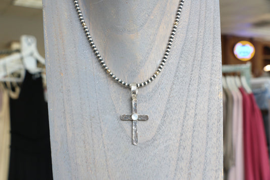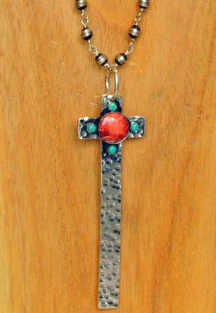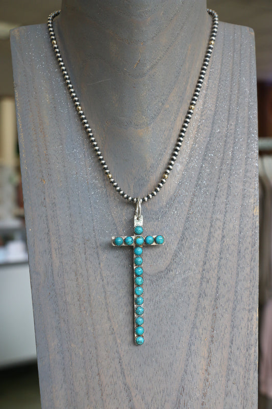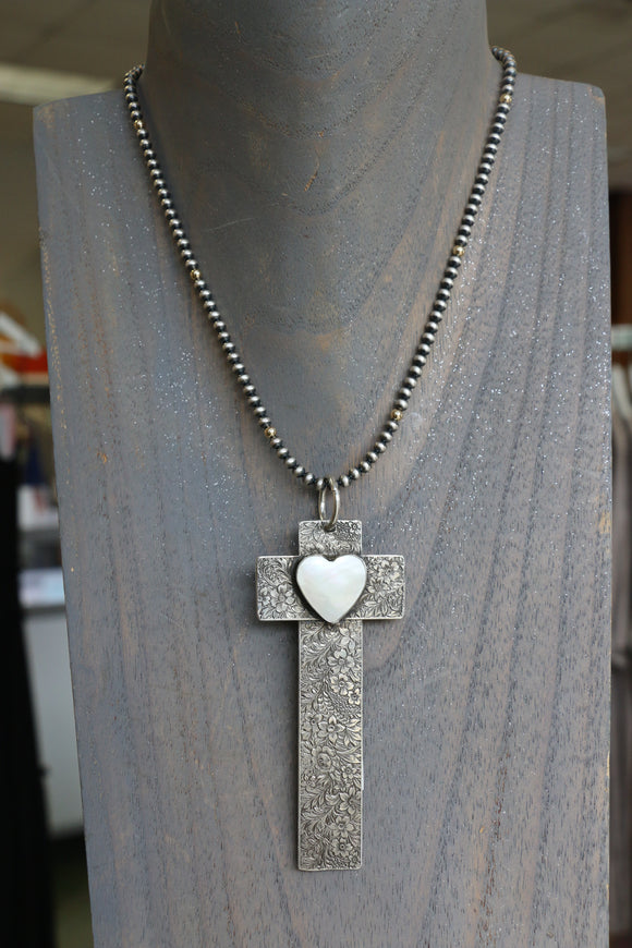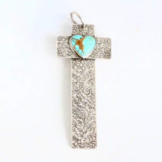 Engraved Sterling Silver Cross Pendant with Heart Turquoise