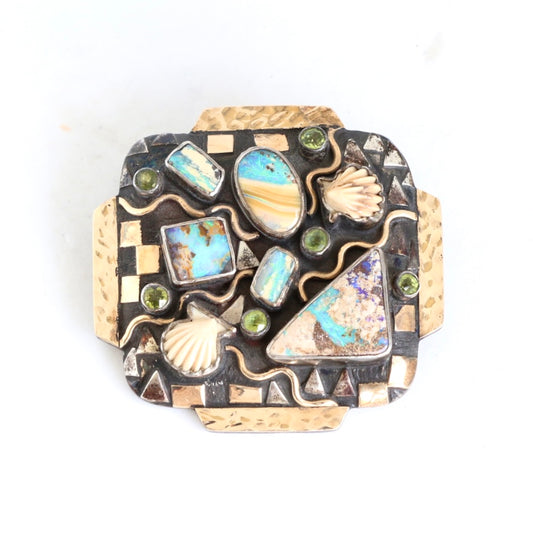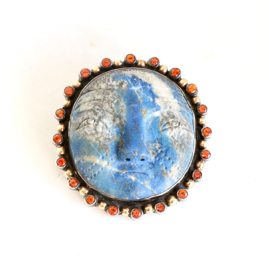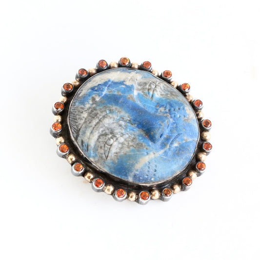 Blue Lapis Face Surrounded by Orange Sapphires and Gold "Signature" Pendant