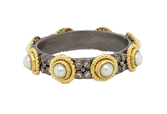 White Pearl Gold Stack Band