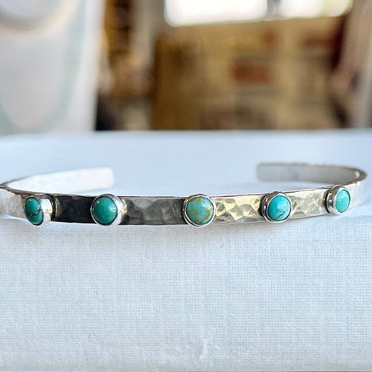 4mm Hammered Sterling Silver & Turquoise Cuff
