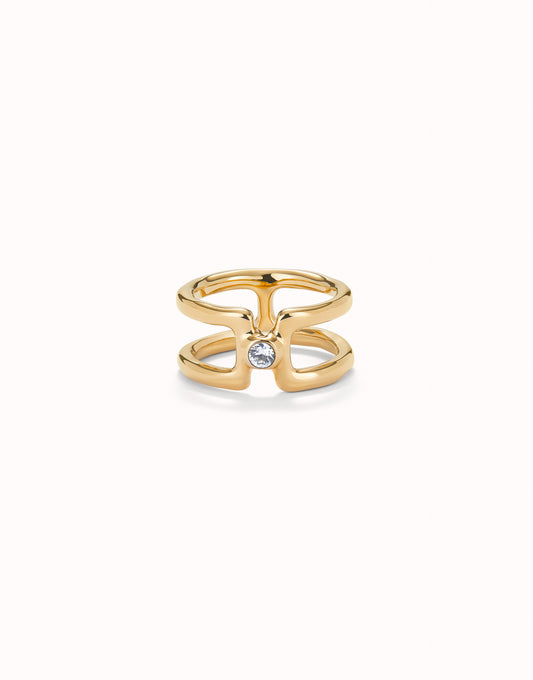 Double 18K Gold-Plated Ring with White Topaz - XL