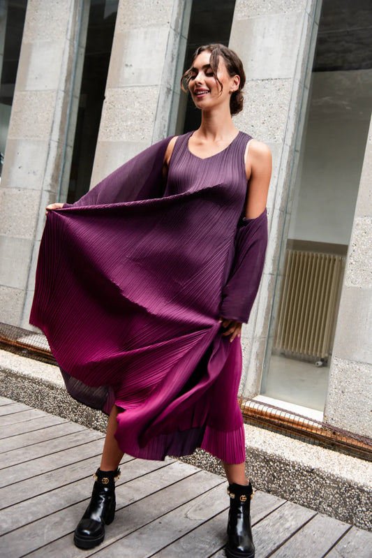 Alquema Long Collare Coat & Estrella Dress Matching Set - Mulberry Ombre