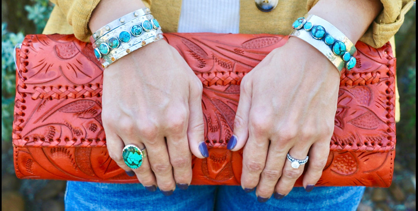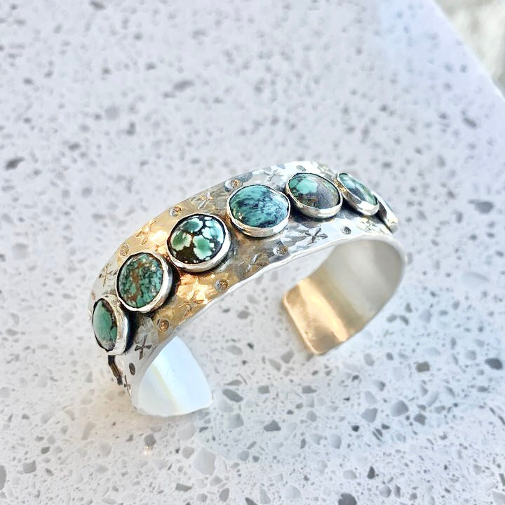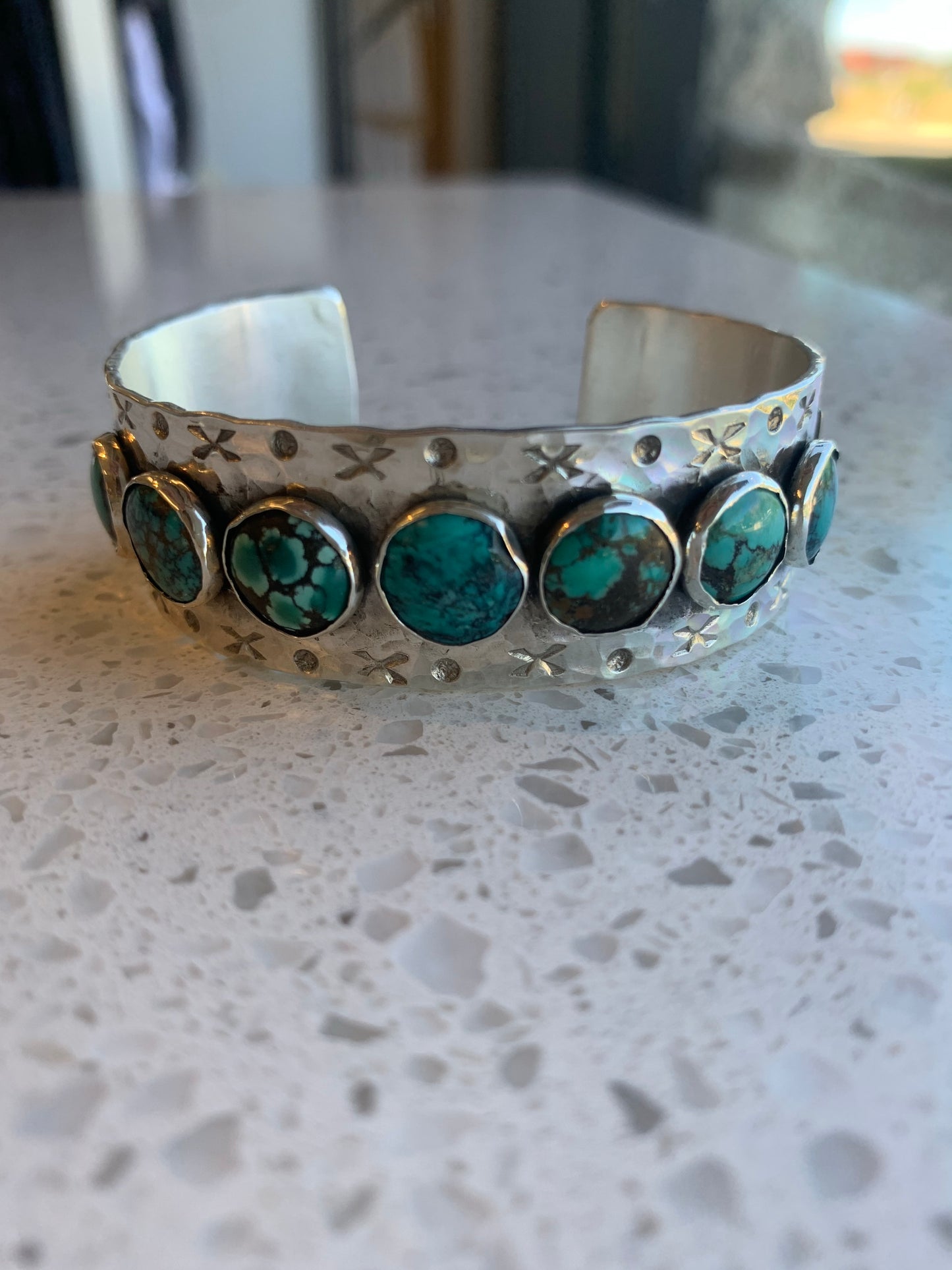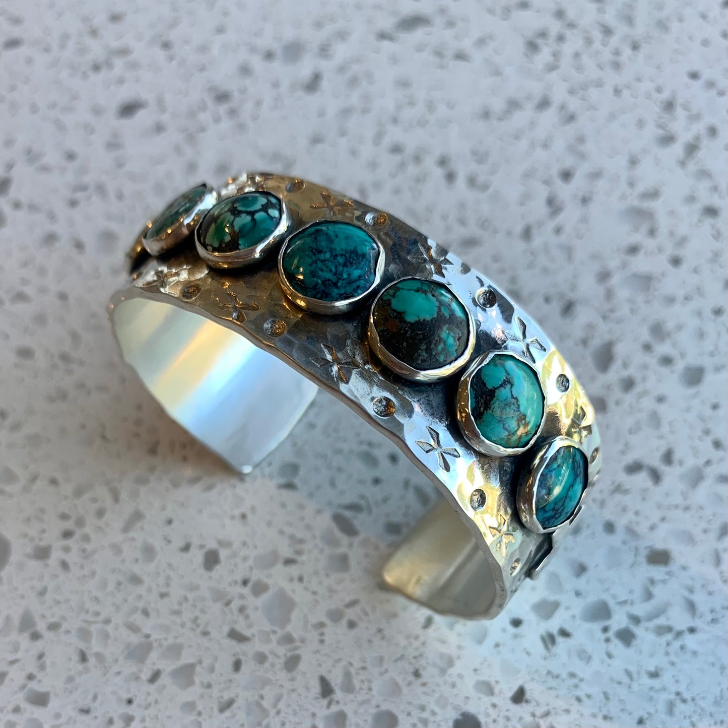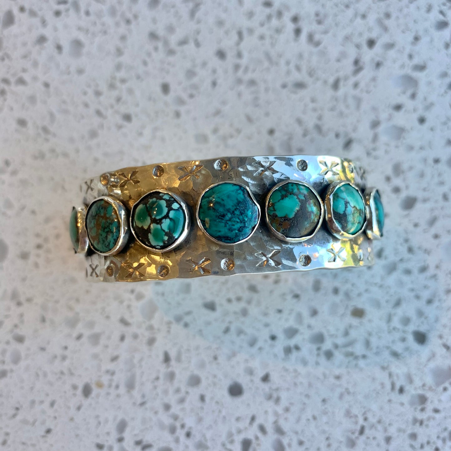 3/4” Stamped Sterling Cuff with 7 Turq Stones