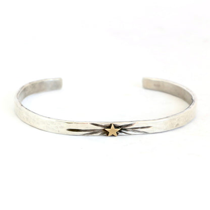 - 4mm sterling silver hammered cuff with a 14kt gold star icon
