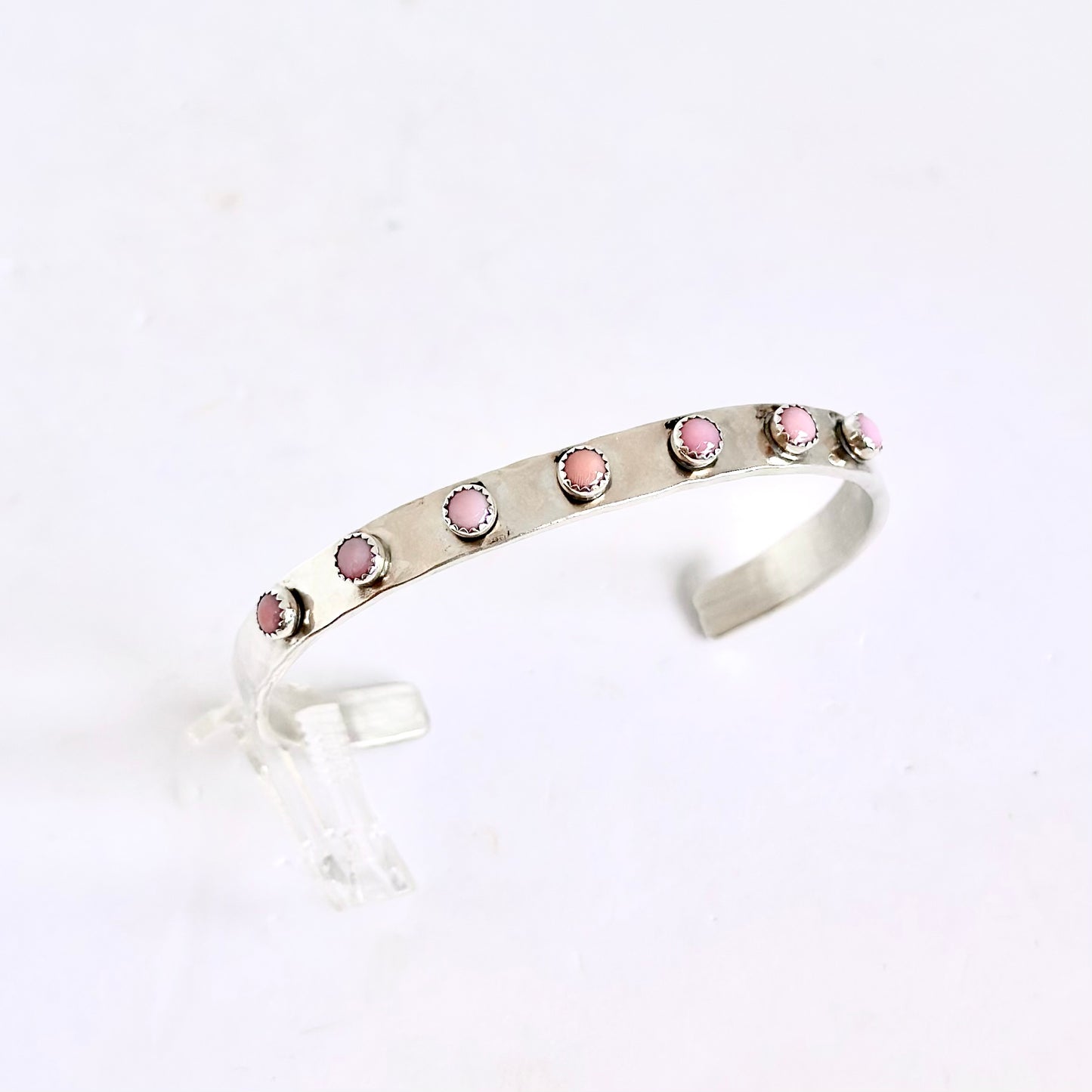 - 6mm sterling silver hammered cuff with (7) 4mm pink conch pearls