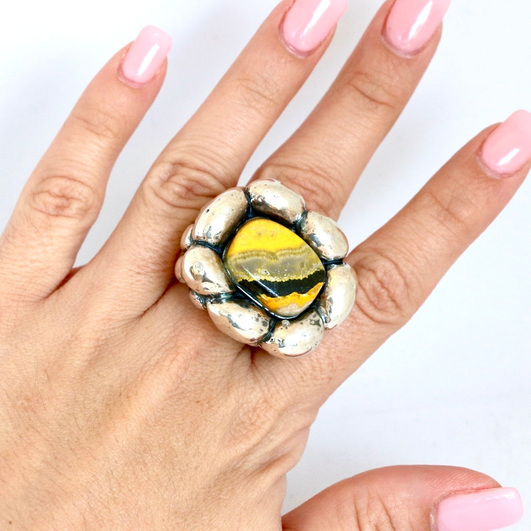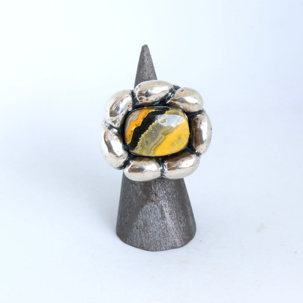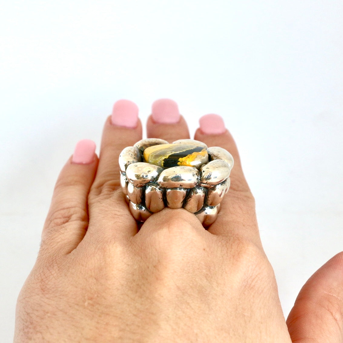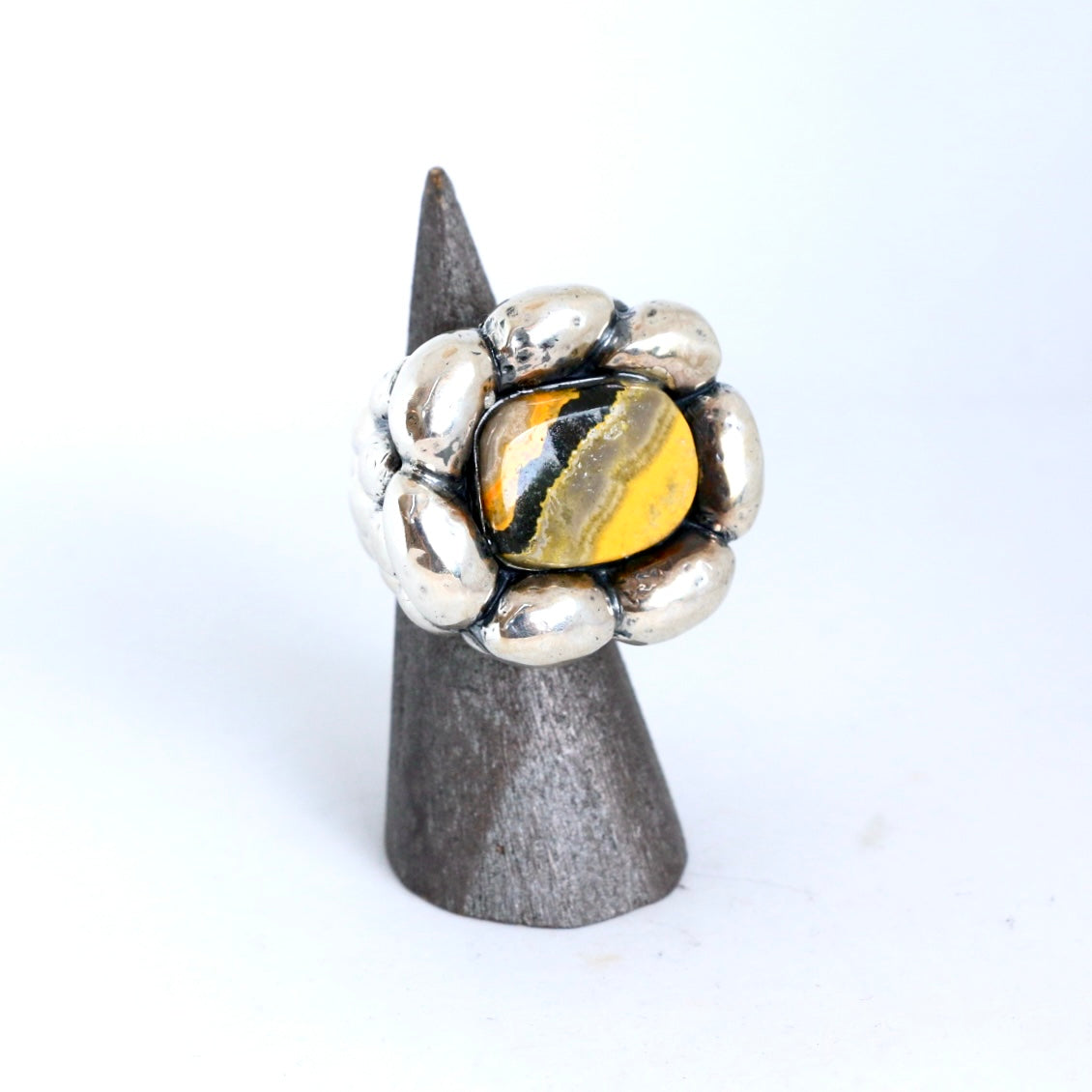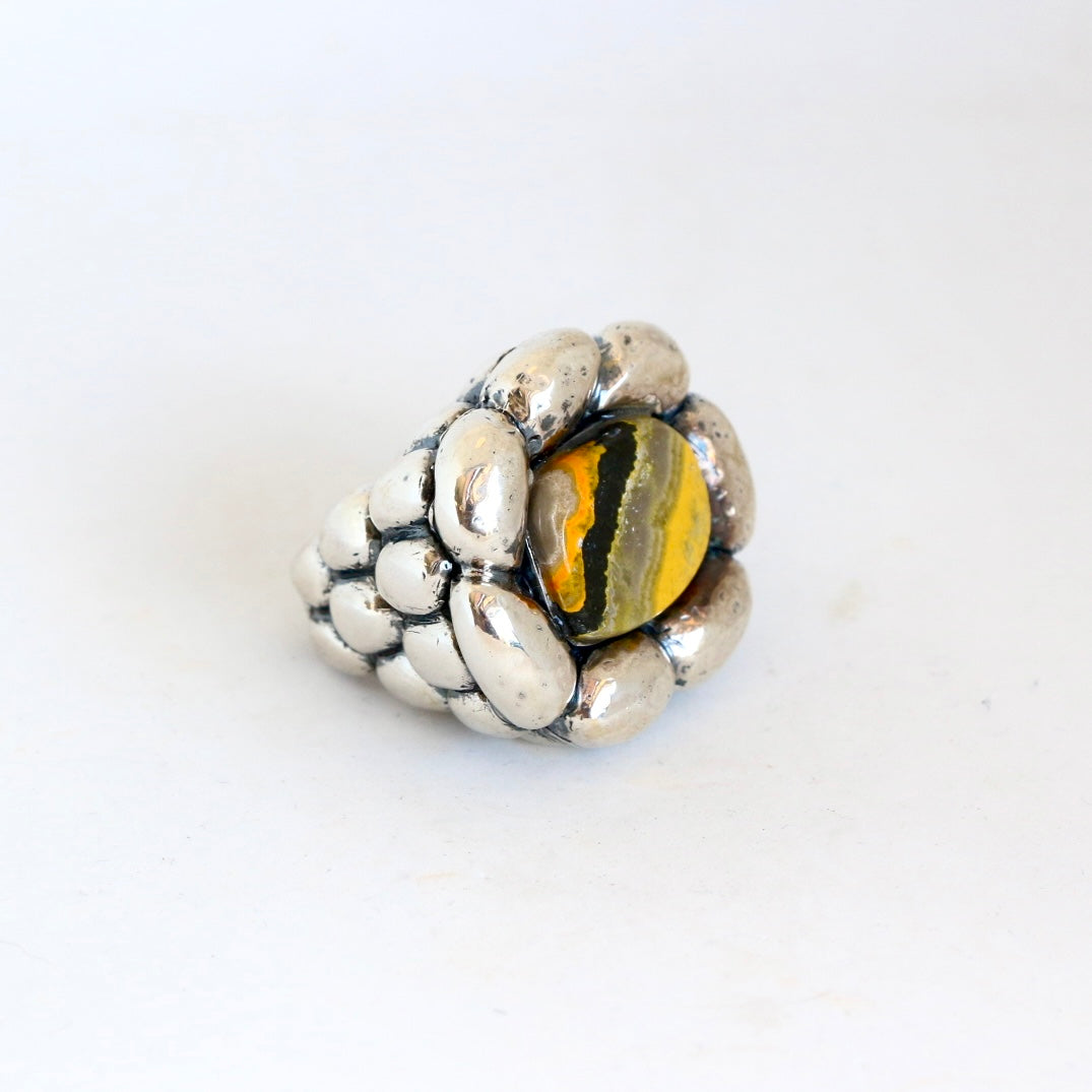 - Dian Malouf uses sterling silver and bumblebee jasper stone