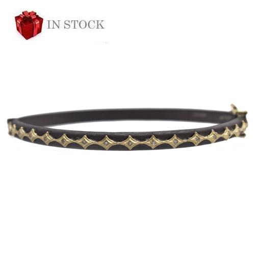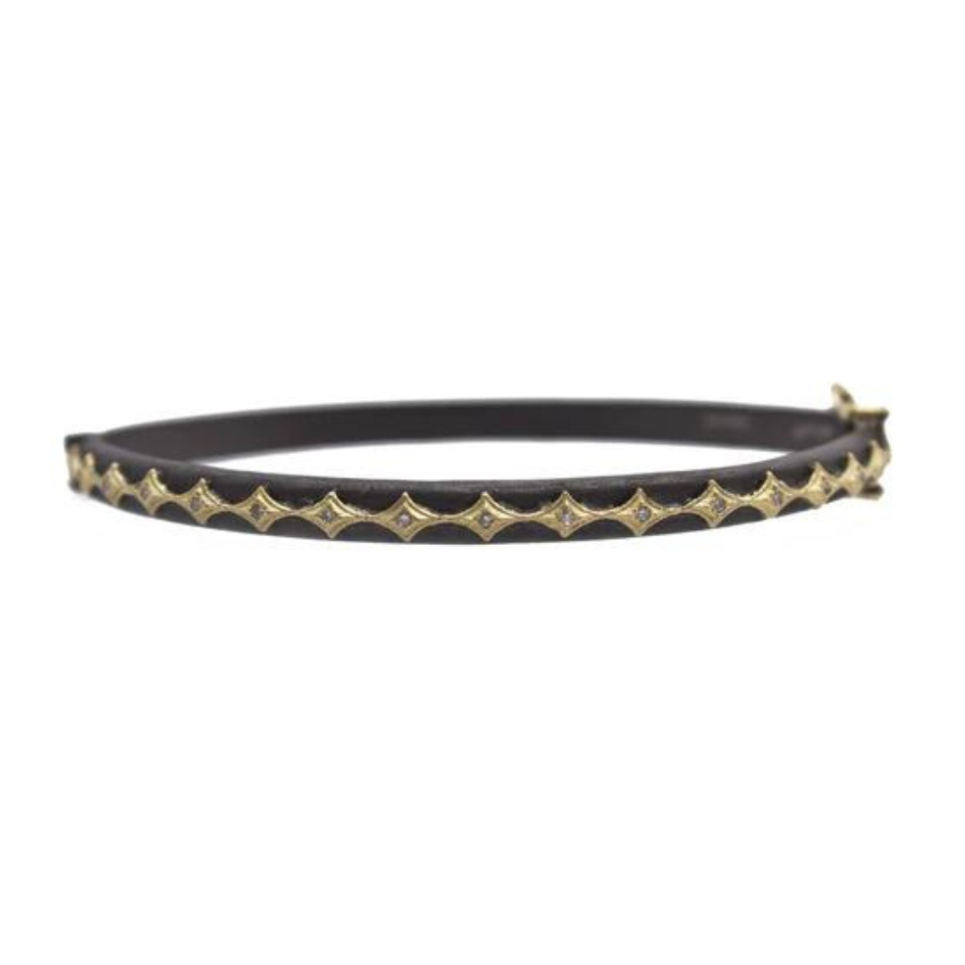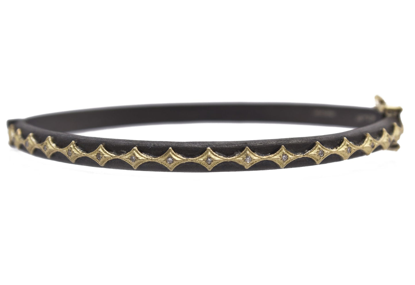 - 18K Yellow Gold and Blackened Sterling Silver Crivelli Huggie Bracelet with White Diamonds