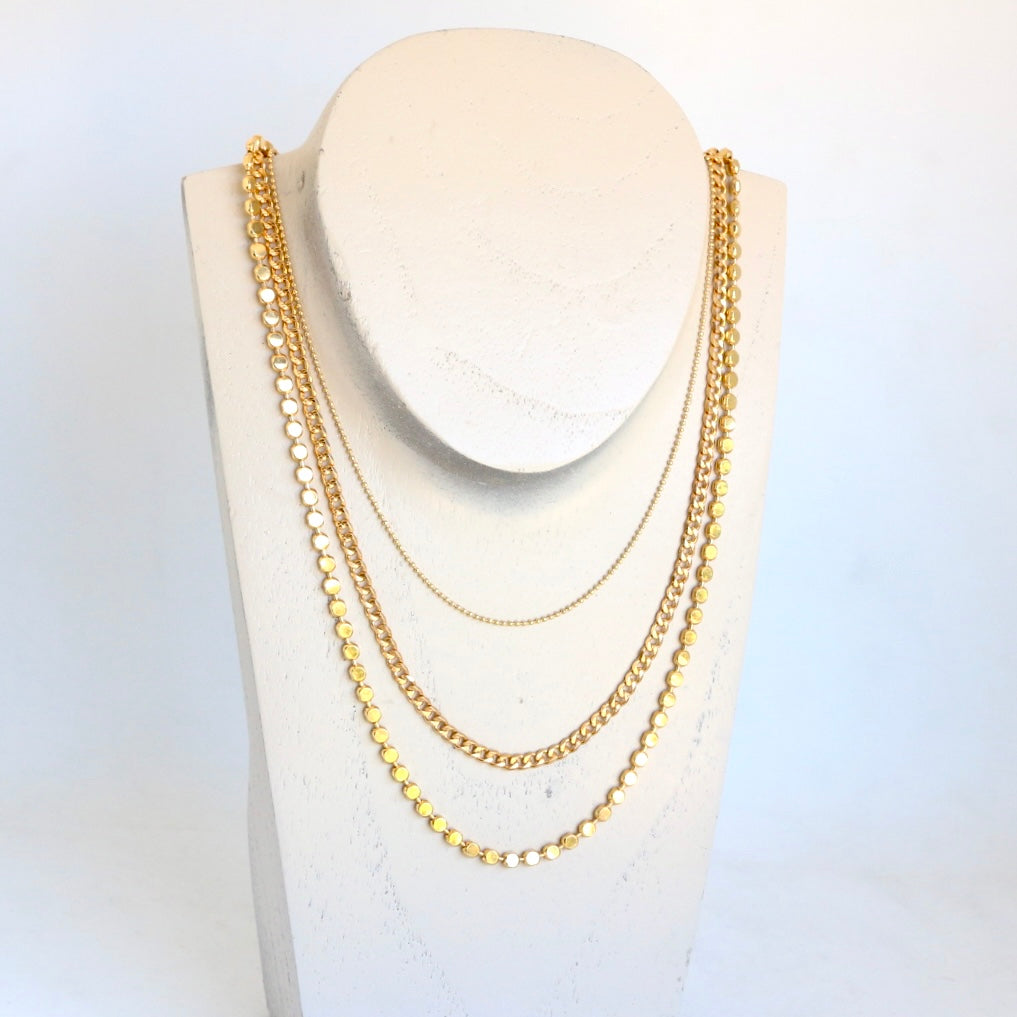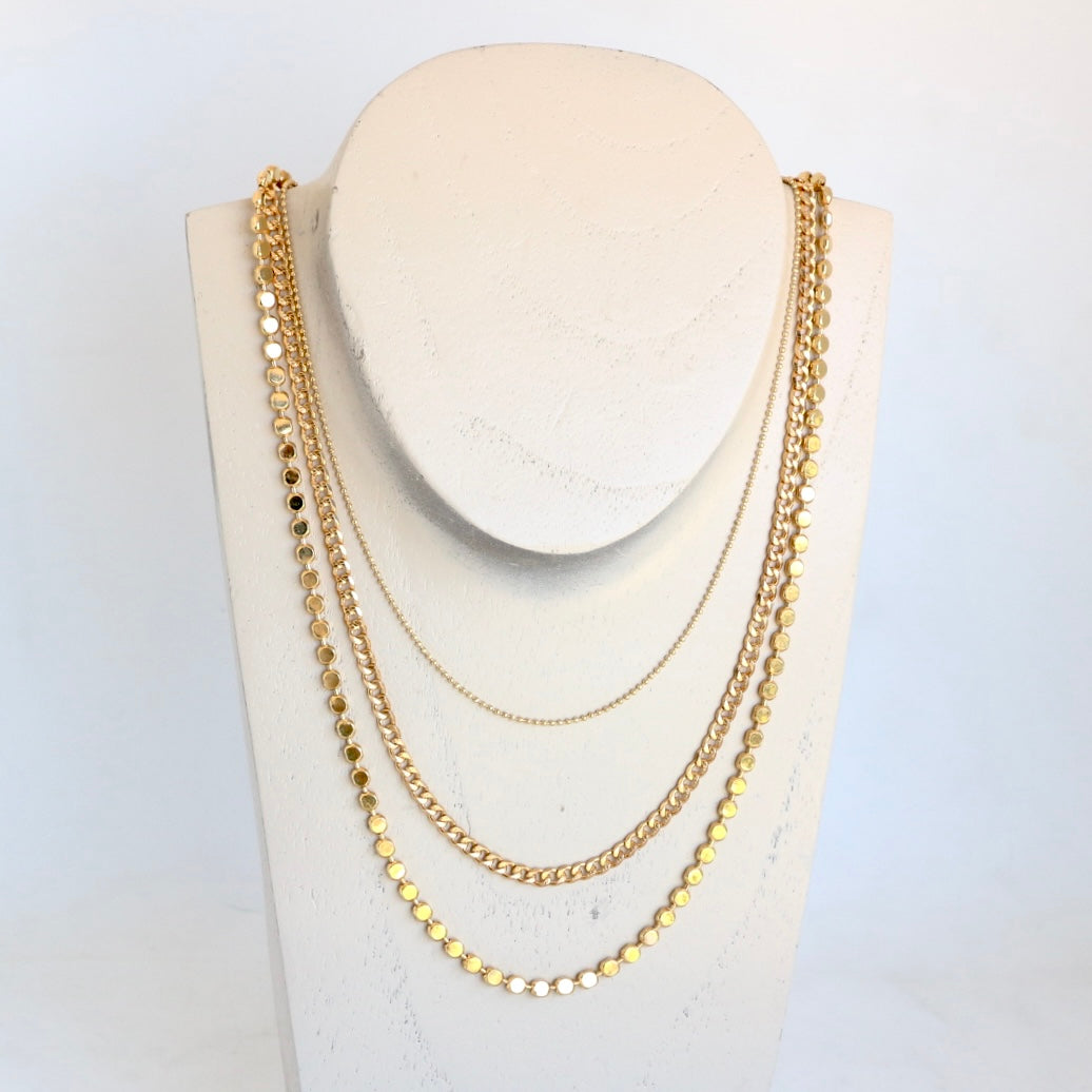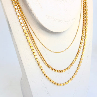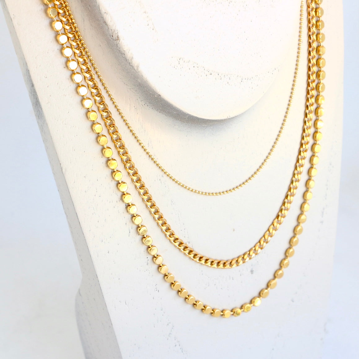 This all-in-one layered necklace is a total crowd-pleaser! Say goodbye to layering dilemmas with this trio that sparkles effortlessly. The shortest strand features tiny bead balls, the middle flaunts a classic Cuban link, and the longest shines with a studded chain—perfect for adding playful charm to any outfit!