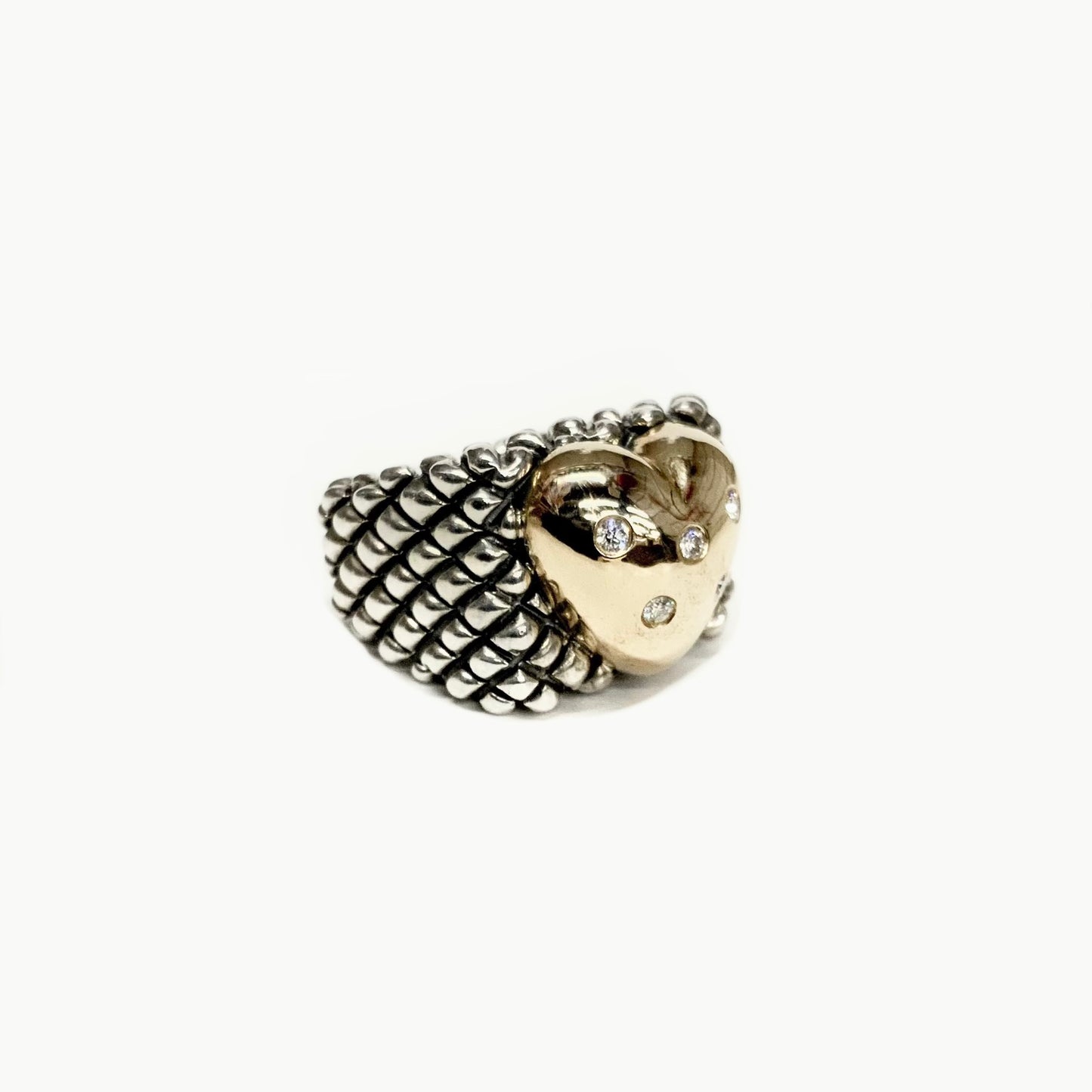 - Dian Malouf uses sterling silver, 14kt gold and .18 CTW diamonds