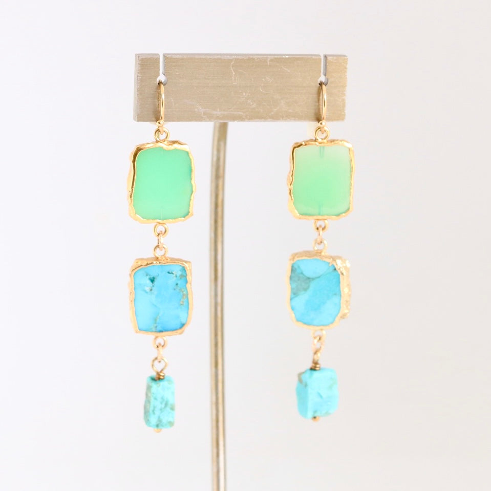 Green Chalcedony and Howlite Turquoise Drop Gold Earrings