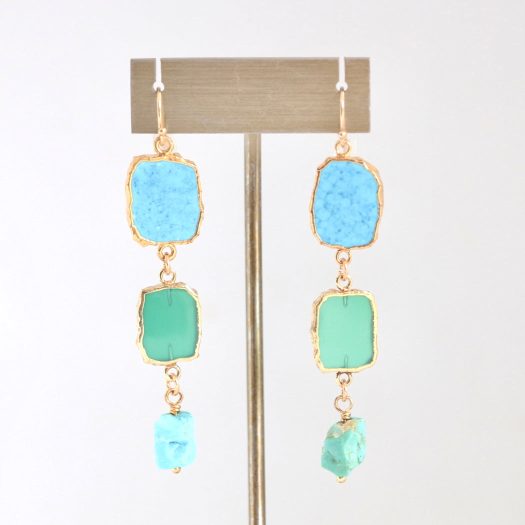 Howlite Turquoise and Green Onyx Stone Drop Gold Earrings