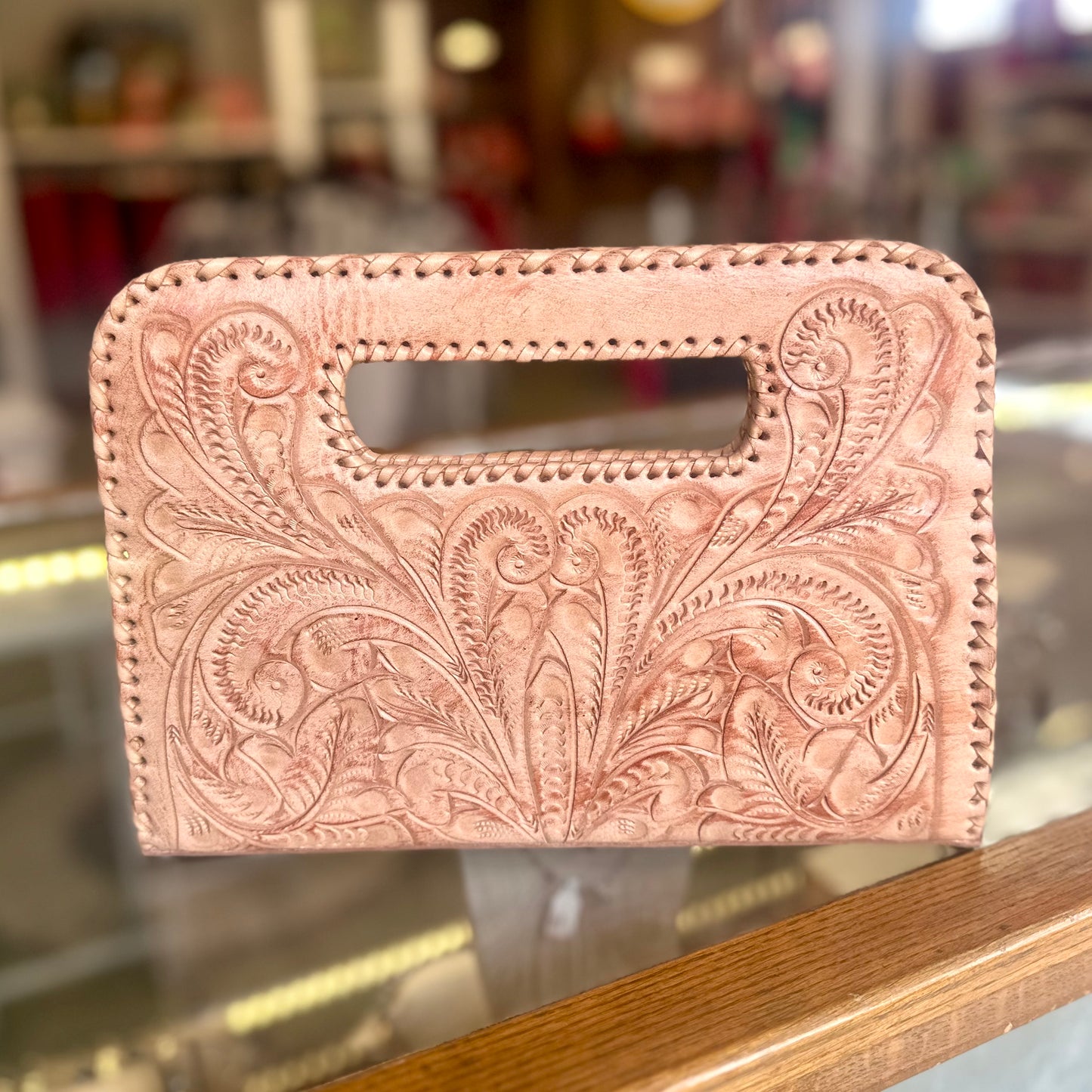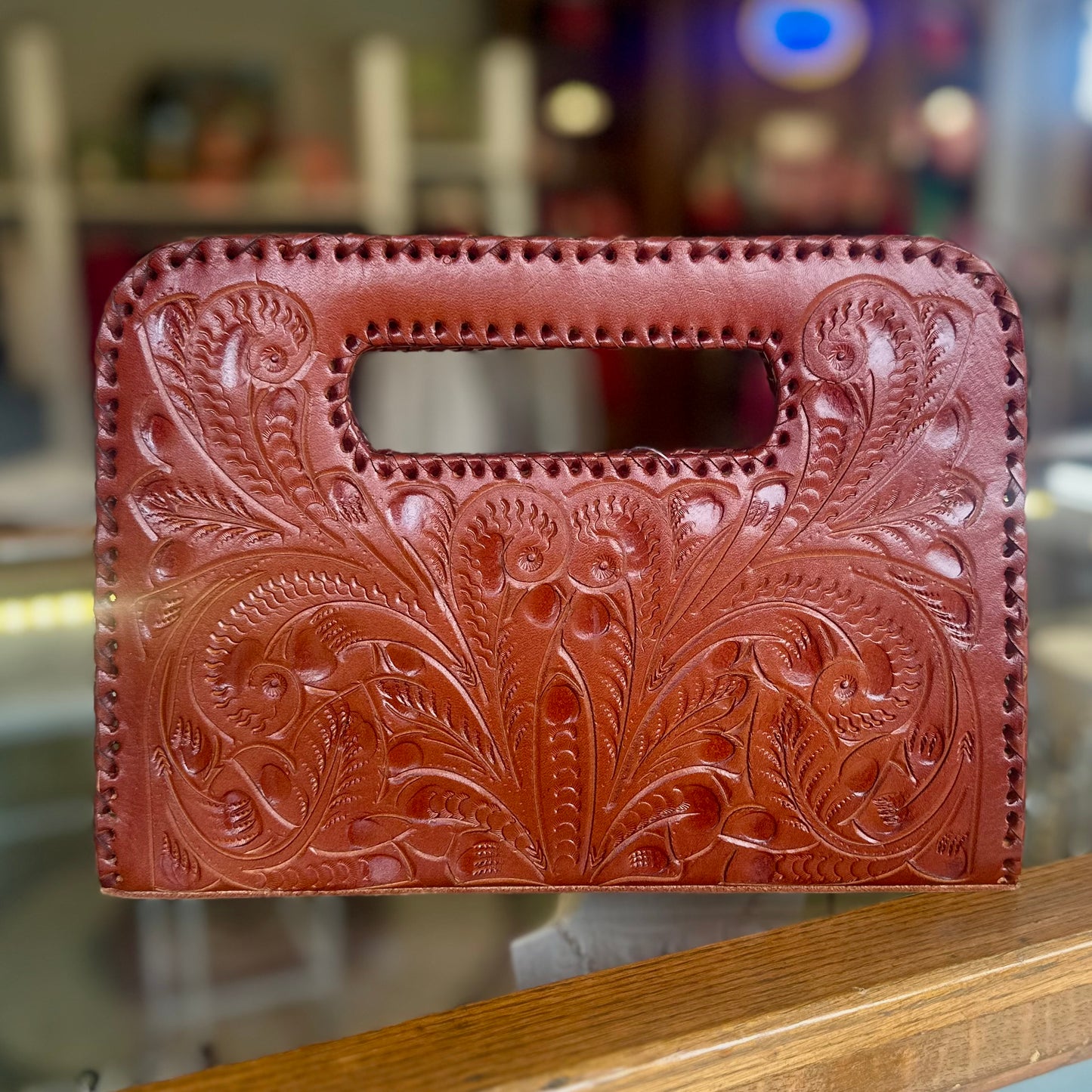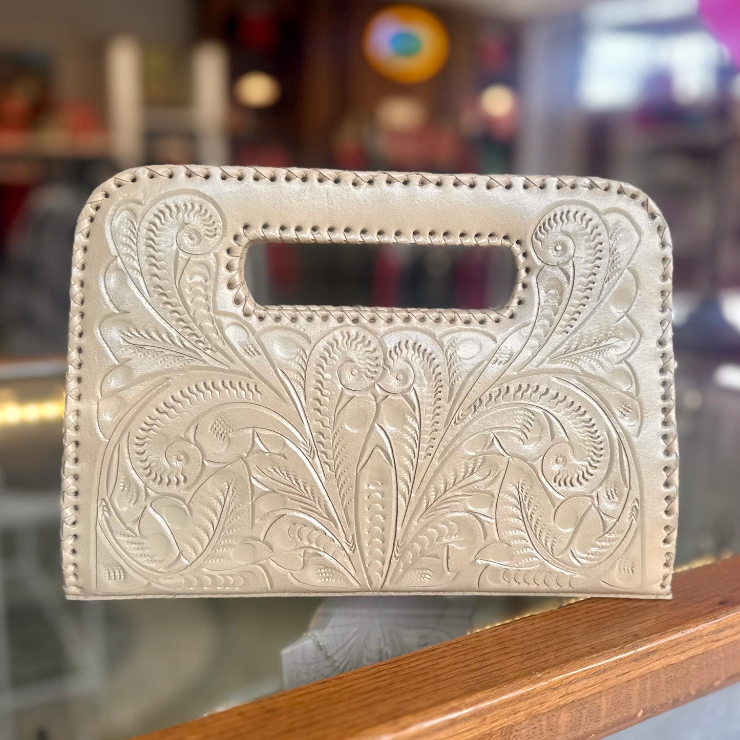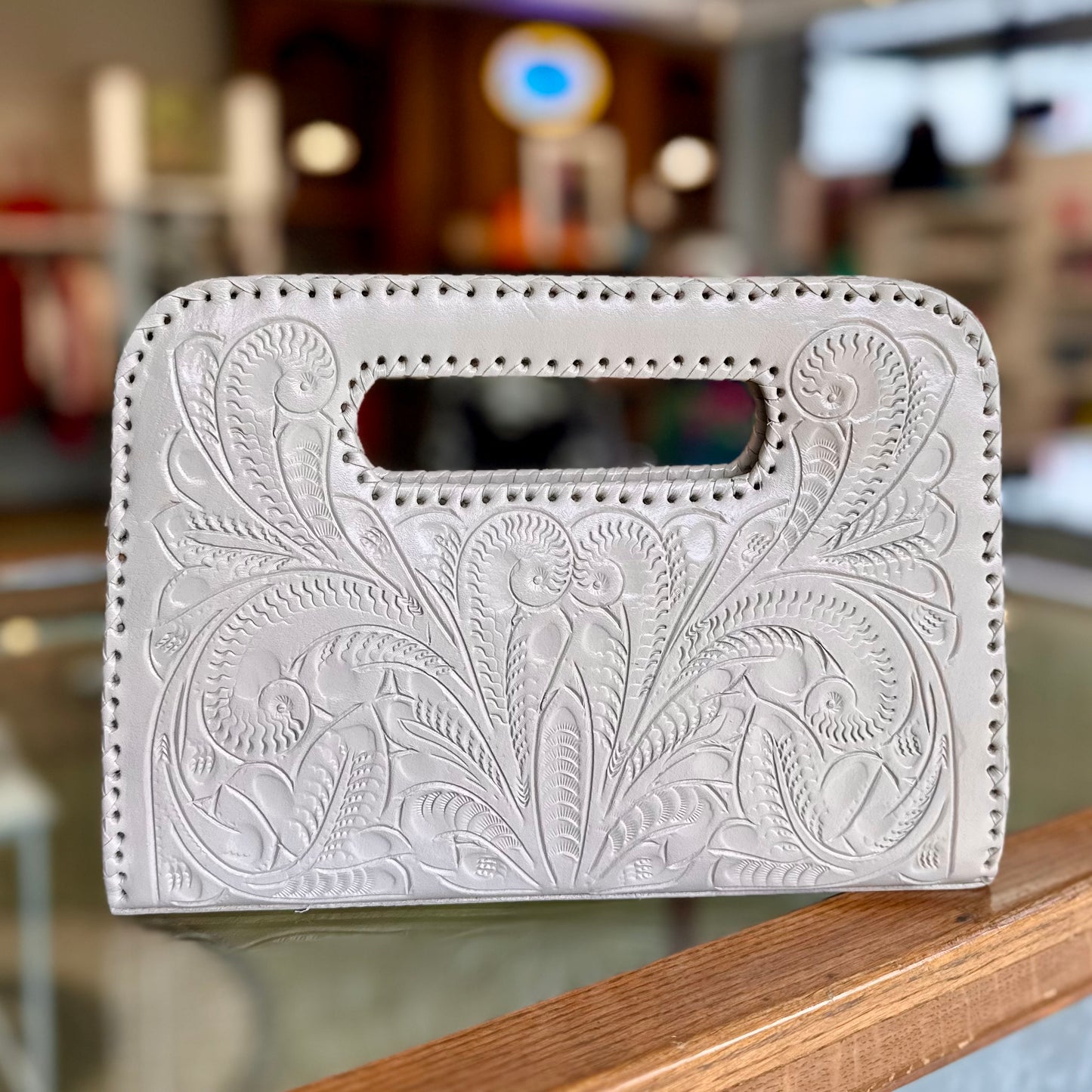 Each beautiful Alexis David creation is of the highest quality hand-tooled, hand-dyed leather, uniquely crafted and hand laced in a variety of gorgeously deep, rich colors to suit every mood and every season! The embossed hand-tooling is deep and detailed in intricate designs that suit the particular style of each clutch.