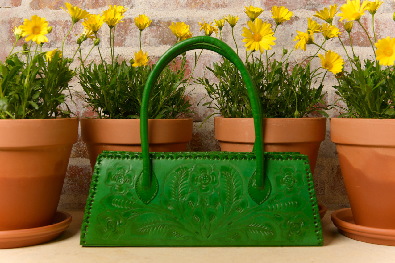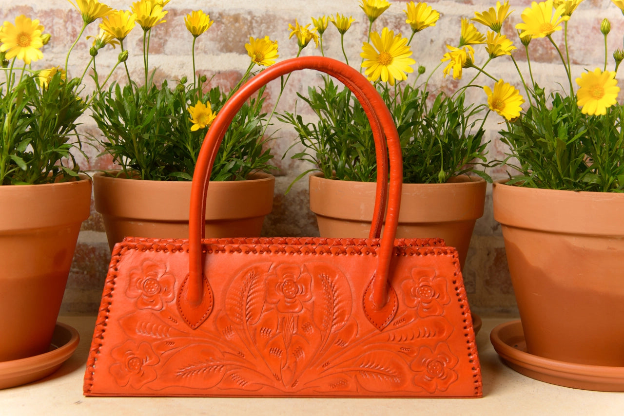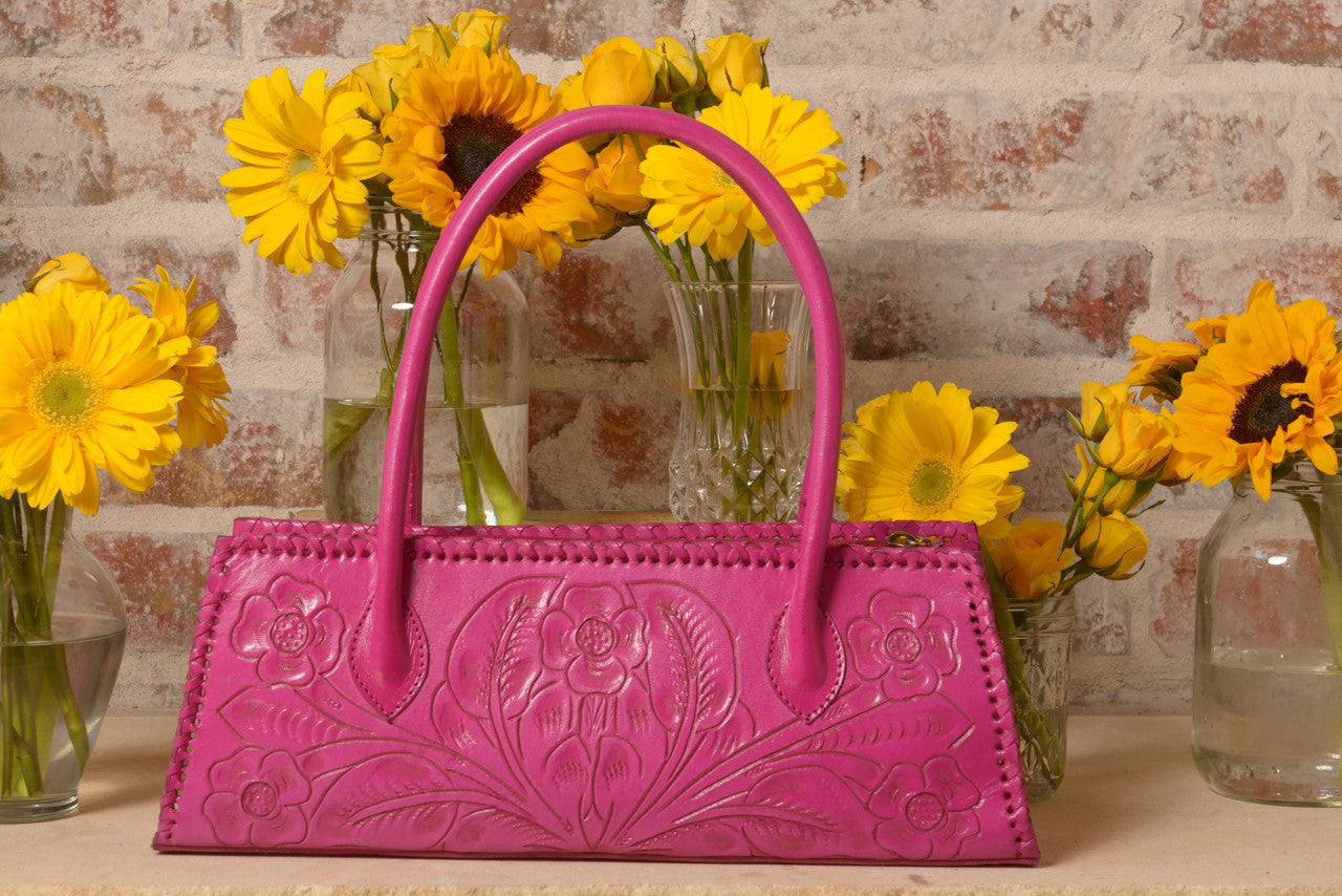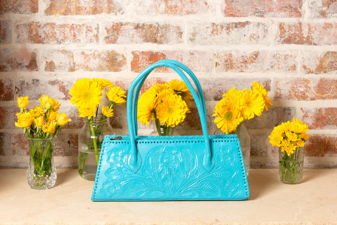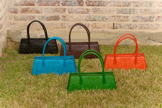 Each beautiful Alexis David creation is of the highest quality hand-tooled, hand-dyed leather, uniquely crafted and hand laced in a variety of gorgeously deep, rich colors to suit every mood and every season! The embossed hand-tooling is deep and detailed in intricate designs that suit the particular style of each bag.