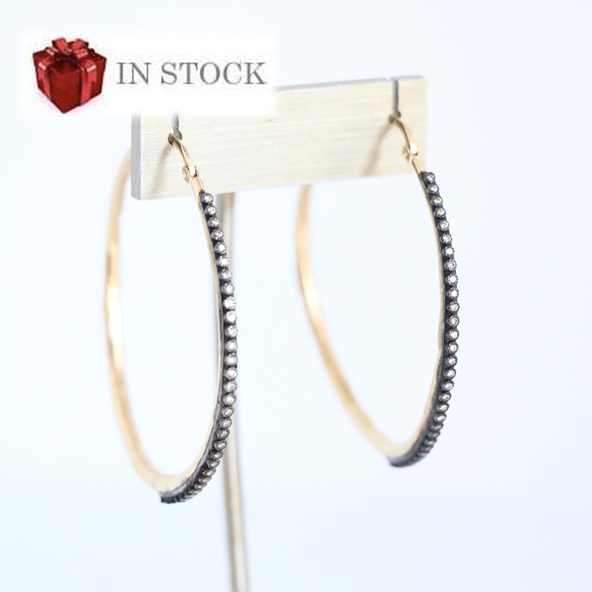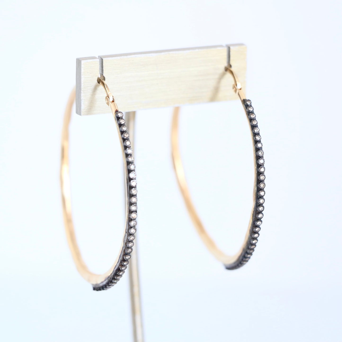- 18kt gold hoops with pave champagne diamonds on blackened sterling silver
